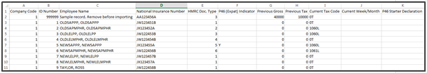 - Earnings & LEL- Where LEL = Lower Earnings Limit, this must be in numeric form with no decimal values.